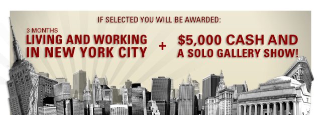 “Become a part of the world’s largest creative community and get discovered. This is your chance at a 3-month New York City artist residency, a $5,000 cash grant and access to the resources necessary to help you create a body of work more dynamic and expansive than the city itself. Go ahead, amaze us.”